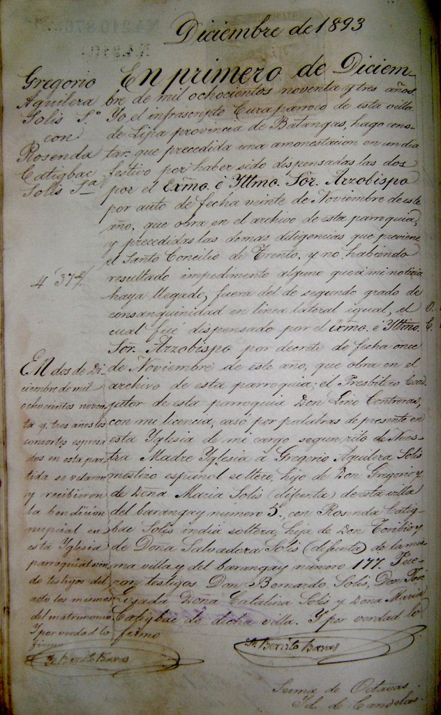 From the Registros Parroquiales of San Sebastian de Lipa, 1778-1952.