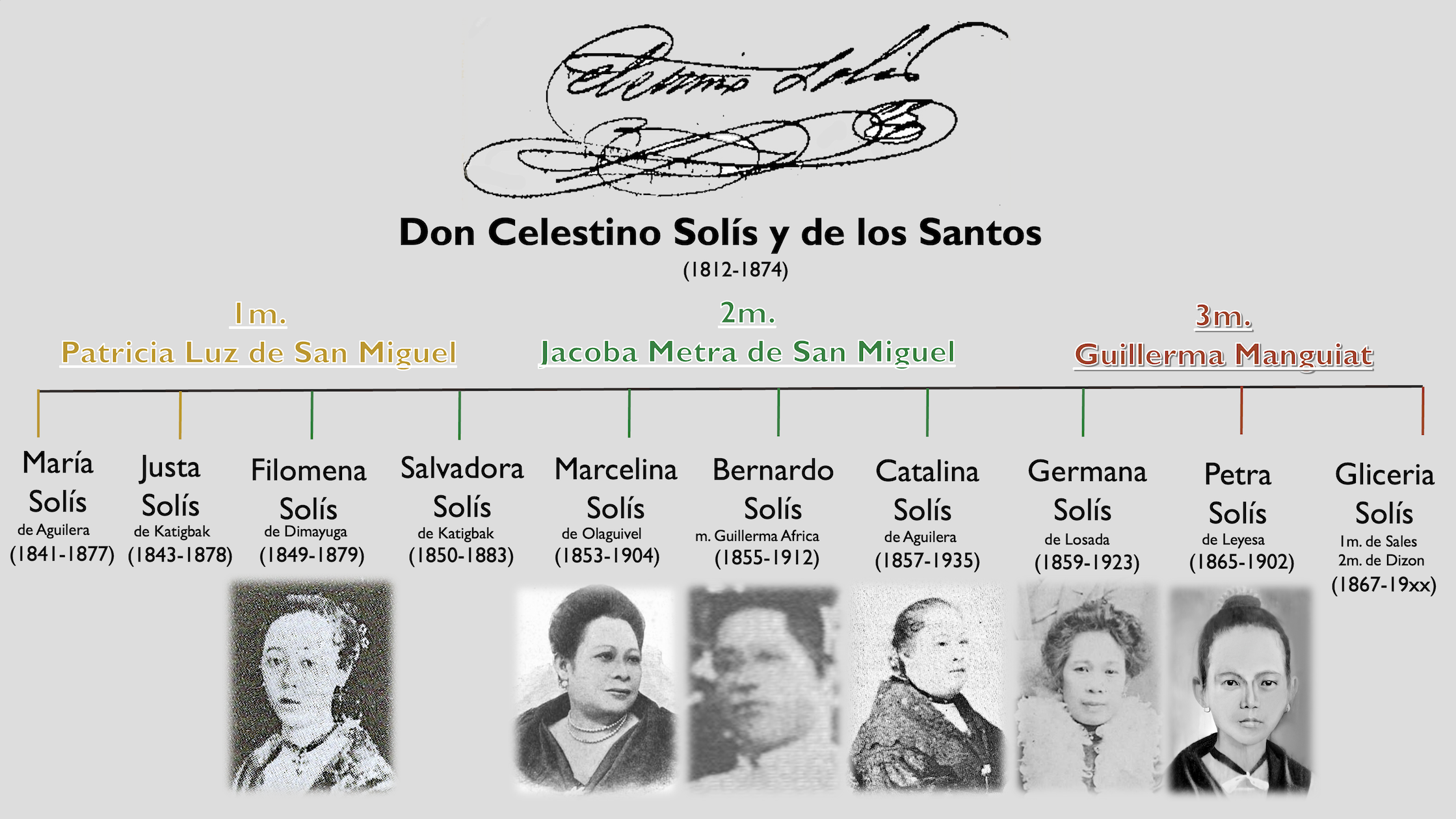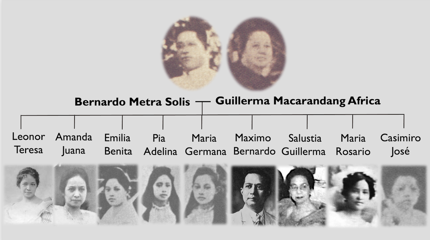 Don Bernardo Solís y Metra was born in 1855 in Lipa, Batangas, the only son among the many daughters of Don Celestino Solís, a prominent coffee planter and four-term gobernadorcillo, and Doña Jacoba Metra de San Miguel, a lady of Chinese descent.